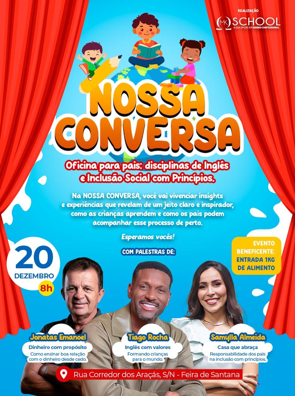 “Nossa Conversa”, evento com foco em inglês, inclusão social e valores familiares para crianças foi realizado, neste sábado (20), na “MK SCHOOL”, que fica no Corredor dos Araçás, no bairro do SIM em Feira de Santana.