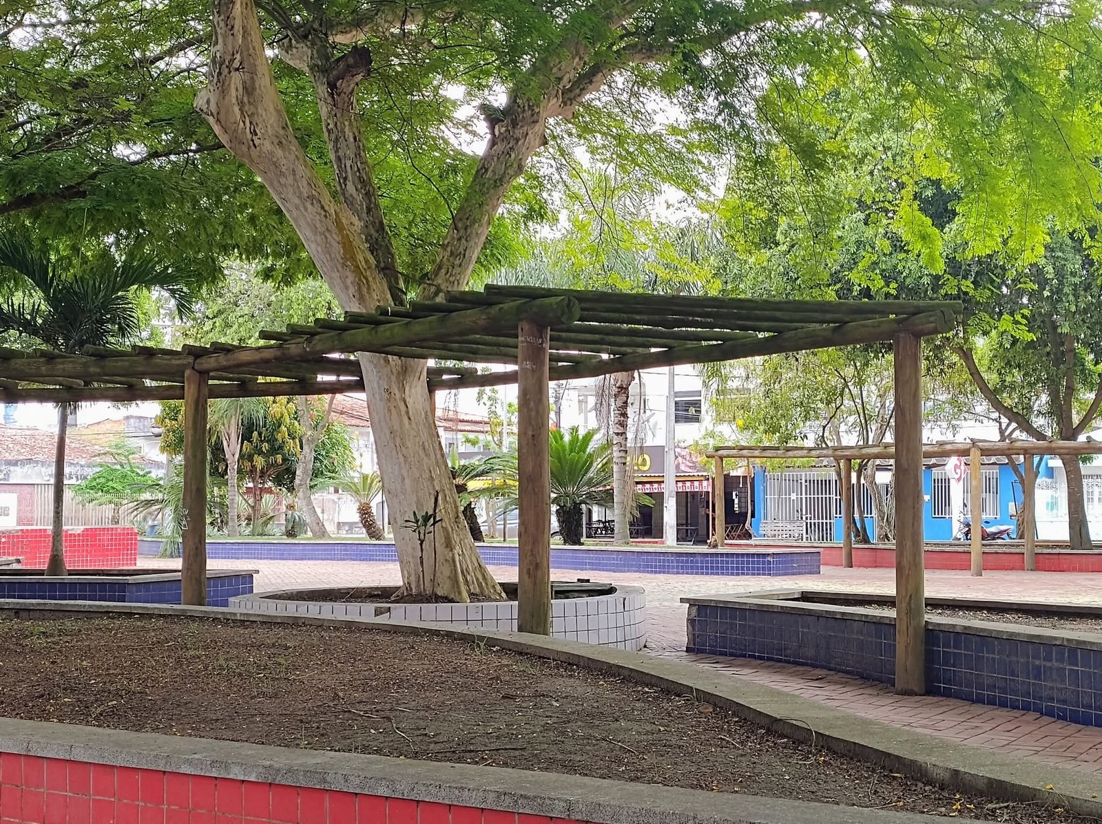 Tem caramanchão pelado no centro da Feira, tá pelado o de Candeia Grossa, onde quer que a Prefeitura faça uma praça eles estão no projeto. Mas sem trepadeira, sem sombra.