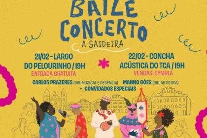 O ‘Baile Concerto – A Saideira’ acontece neste sábado, 21, às 19h, no Largo do Pelourinho, com entrada gratuita. No domingo (22), também às 19h, o evento segue na Concha Acústica do Teatro Castro Alves. Para a apresentação na Concha, ainda há ingressos disponíveis na plataforma Sympla e na bilheteria do TCA, pelos valores de R$80 (inteira) e R$40 (meia).