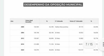 Em 2024, o candidato do PT, Zé Neto, conseguiu o seu melhor desempenho eleitoral, com 46,74% dos votos, quase levando a decisão para o 2º turno. Foi, neste ano também, que José Ronaldo registrou sua pior performance eleitoral (votos válidos) nas 5 eleições que disputou (e venceu) para prefeito.
