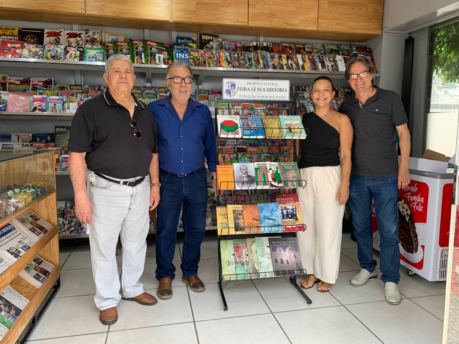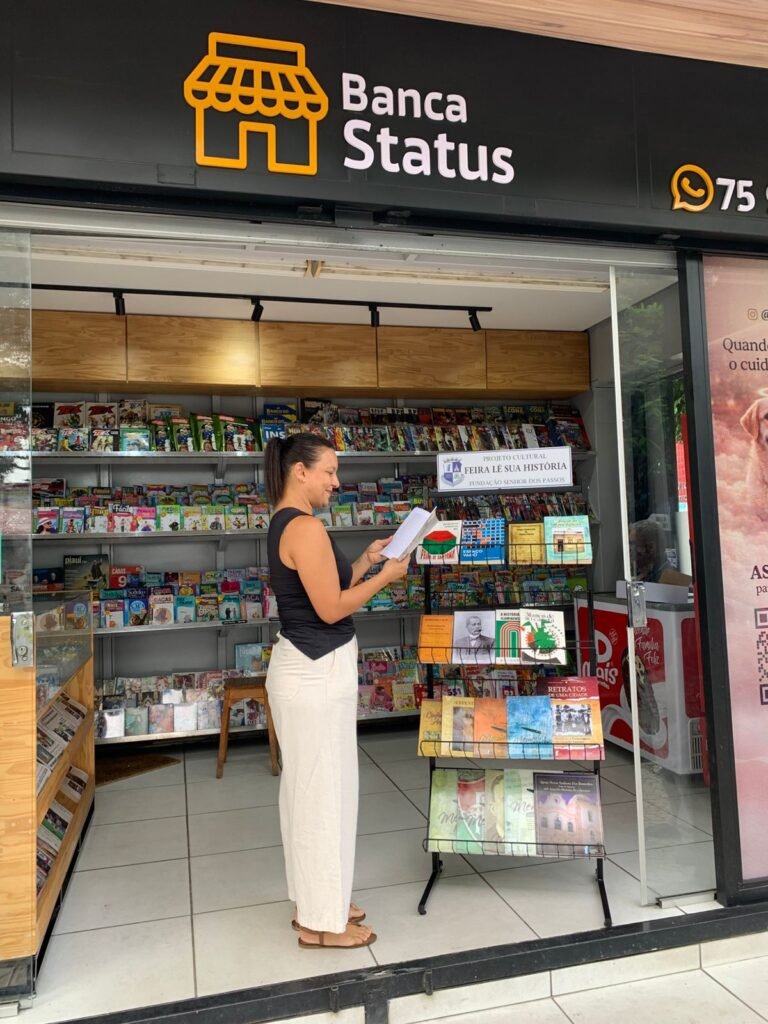 O projeto “FEIRA LÊ SUA HISTÓRIA” chega à BANCA STATUS em frente ao EMEC, a primeira banca de jornais e revistas a receber o projeto na manhã dessa quinta-feira. Promovido pela Fundação Senhor dos Passos, este projeto constitui uma iniciativa de relevante valor cultural, educativo e social para o município de Feira de Santana, ao disponibilizar, por meio de expositores distribuídos em diversos pontos estratégicos da cidade, obras publicadas pela própria Fundação e pelo Núcleo de Preservação da Memória Feirense Rollie E. Poppino.