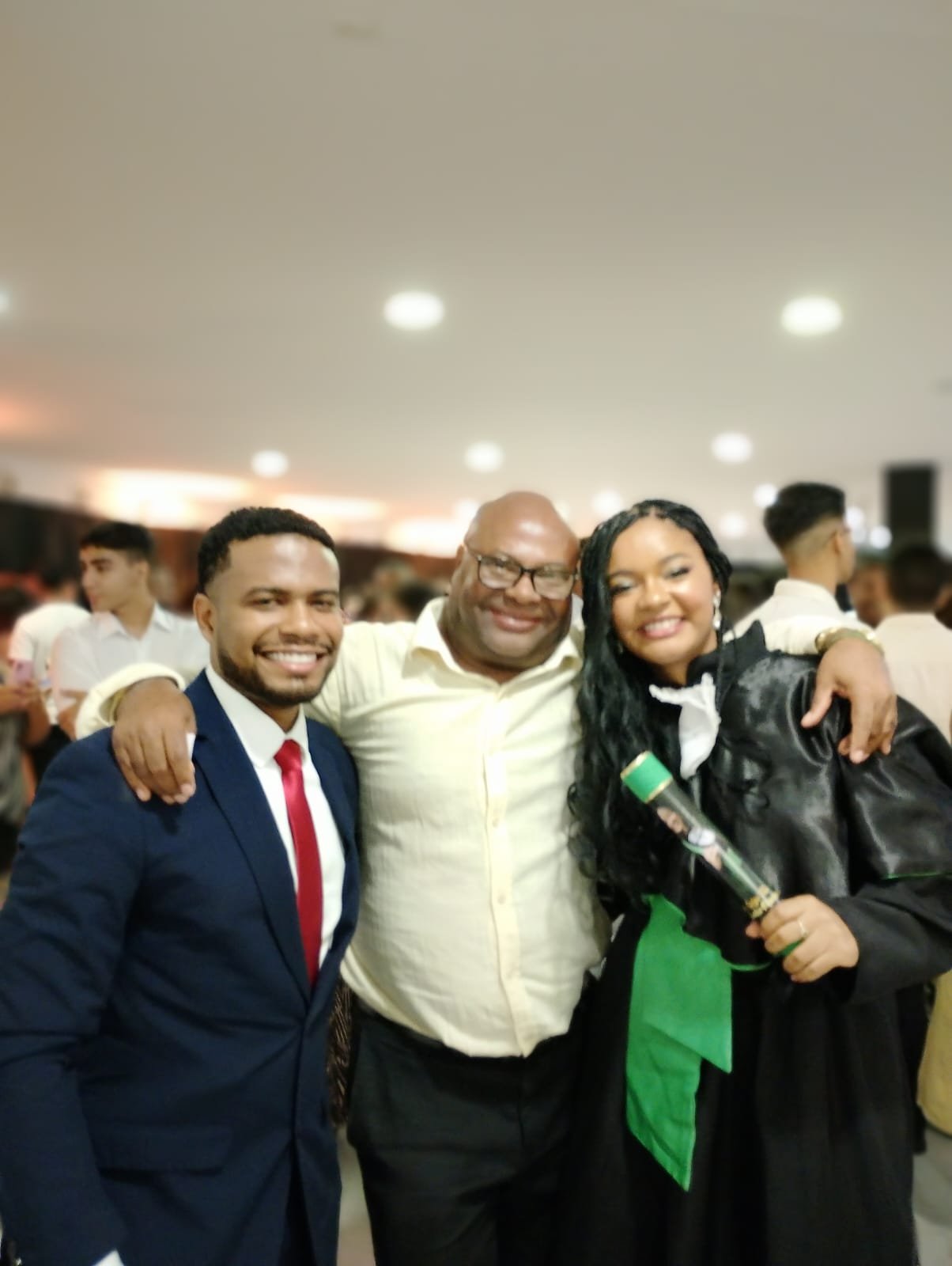 Nas mesas, a base sólida da família Silva Santos formava um mosaico de apoio e celebração: a avó Diva, os tios Edimilson, Ocsicnarf, Cleidson e Dinha, ao lado da mãe corajosa, Ana Célia, e da madrinha e tia Anatalia, partilhavam o júbilo da conquista.