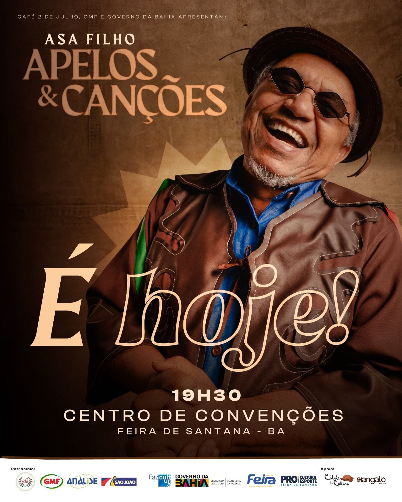 CHEGOU O DIA! Nesta sexta, às 19h30, o cantor e mestre de Cultura Popular Asa Filho apresenta o show de lançamento da obra Apelos & Canções no Teatro do Centro de Convenções de Feira de Santana.