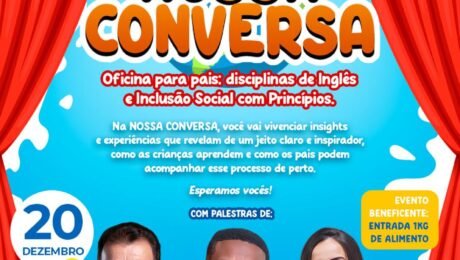 “Nossa Conversa”, evento com foco em inglês, inclusão social e valores familiares para crianças foi realizado, neste sábado (20), na “MK SCHOOL”, que fica no Corredor dos Araçás, no bairro do SIM em Feira de Santana. “Com uma proposta acolhedora e inspiradora, o evento abordou temas essenciais para a formação integral dos pequenos, a exemplo