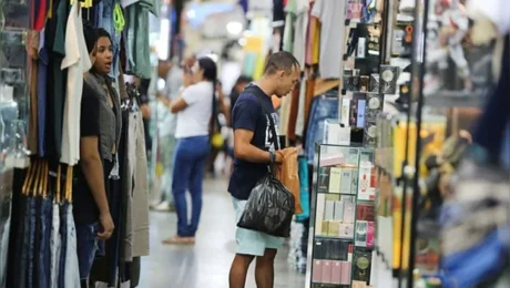 Carregadores, cabos, fones de ouvido, capas, películas, suportes, caixas de som, fones bluetooth, cartões de memória, HDs externos, mouses, teclados, caixas de som USB. Tudo está ao alcance da mão, disponível nos balcões envidraçados que, simetricamente, ajustam-se aos boxes minúsculos e iluminados com profusão. Também é possível encontrar confecções: camisas e camisetas, calças, saias, vestidos,